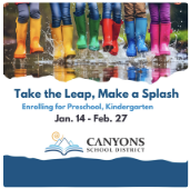 Canyons School District is committed to making this website compliant with the ADA. At this time, we recognize that not all areas of this website may be ADA compliant. We are currently in the process of redesigning and creating new website content to be compliant with the W3C Level Two guidelines. If you are experiencing issues with this website, please contact us here communications@canyonsdistrict.org